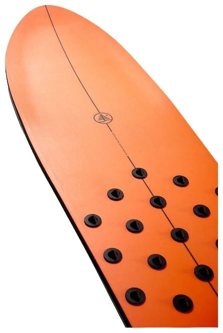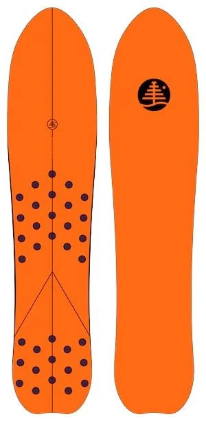 A spoon nose provides float and flow, working in conjunction with a V-hull in the tail that maintains a loose feeling, but transitions into a strong, powerful turn when engaged. This board is built to push boundaries, and spread the joy of surfing on snow.